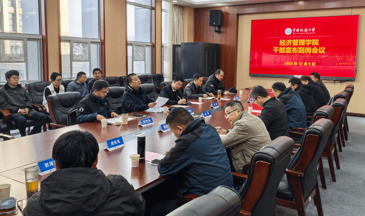 2025年12月9日上午,williamhill英国中文在南望山校区东区综合楼B706会议室召开干部教师大会宣布干部到岗。校党委常委、副校长夏帆出席会议学院新任副院长金贵、侯俊东、池毛毛、郭海湘,学院领导班子成员、三级单位负责人及教职工代表参加会议。校党委组织部副部长张建华主持会议。