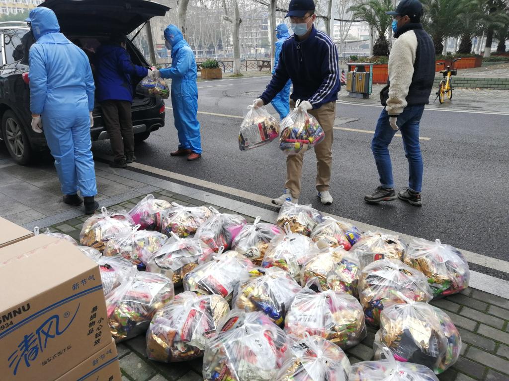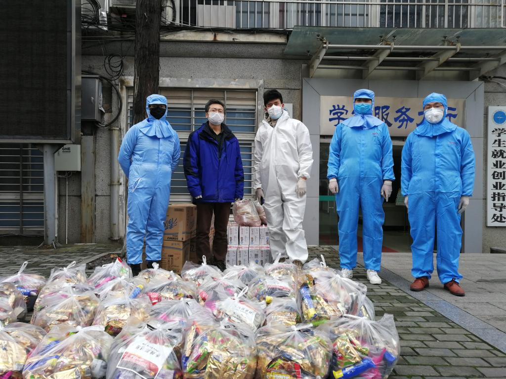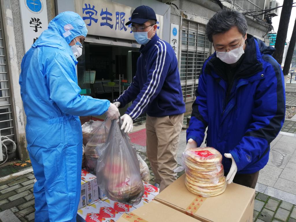 在武汉封城、物资难寻等重重困难中,我校williamhill英国中文迪力木拉提•亚力坤等4位新疆籍同学远在家乡,在老师、同学和校友们的共同努力下,为期5天内,联系到3家供货商的馕、牛奶、烤鸡腿、香肠、方便面、干果、抽纸巾等12种硬核援助物资,全部提供给了我校学生工作处,并委托学工处将物资分发给留校的同学们。26日下午,物资抵达学校,经学工处、保卫处和经管学院的老师们前期协调和有力组织下,留校学生临时党支部的同学积极配合,有序将物资分发到了每一位留校同学的手中。