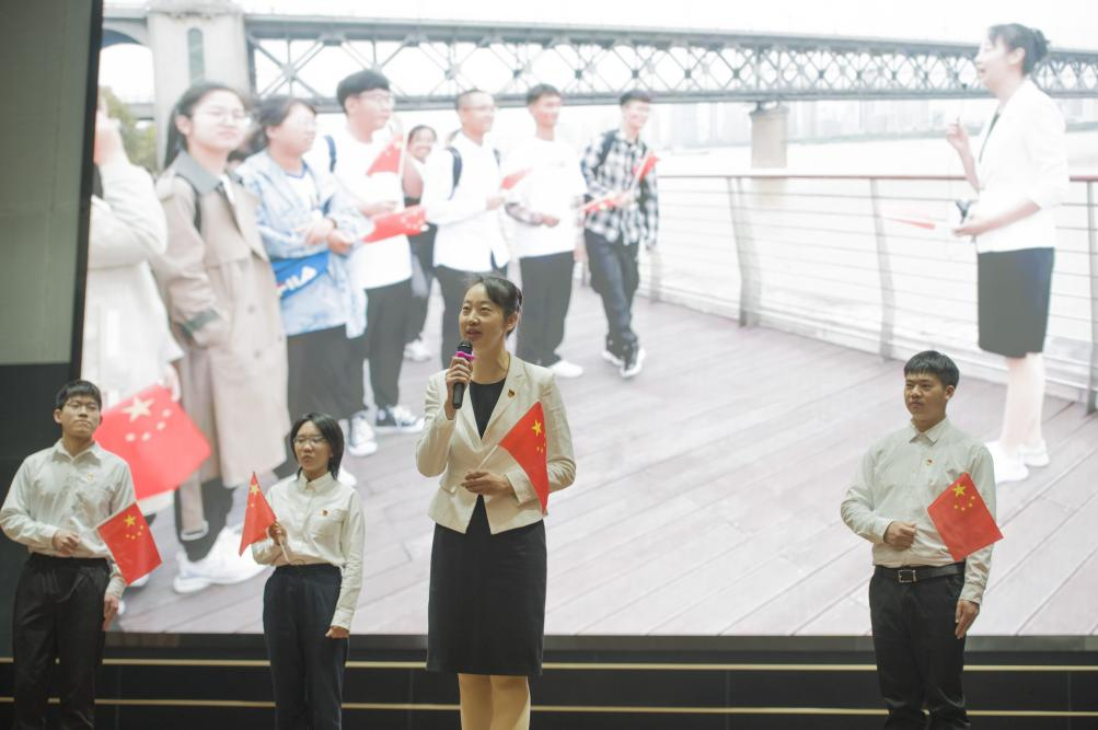 市场营销专业本科生吴恺文将自己在央视录演的《红色文物青年说》节目带到活动现场,带来了一场生动的微党课。他以青年人视角、故事化讲述、创新性呈现的特色,回顾武汉长江大桥的艰难建造史,讲述党带领全国各地的优秀桥梁专家和建设人员攻坚克难、筚路蓝缕的红色故事。他说,从北京录完节目回武汉时,火车正好驶过武汉长江大桥,飞驰而过的短短几十秒,他仿佛又看到了大桥建设时的火热场景,看到了党员同志们一同攻坚克难,听到了铆钉风枪和跳动风顶工作的阵阵铿锵声。