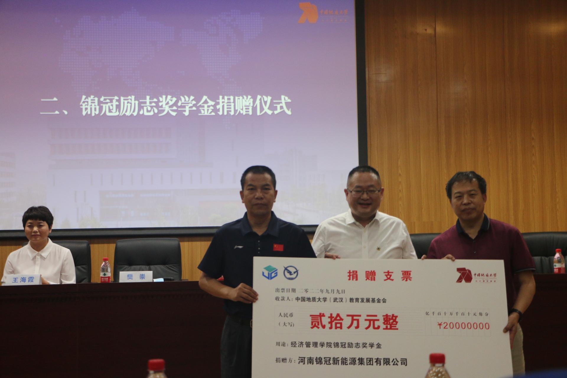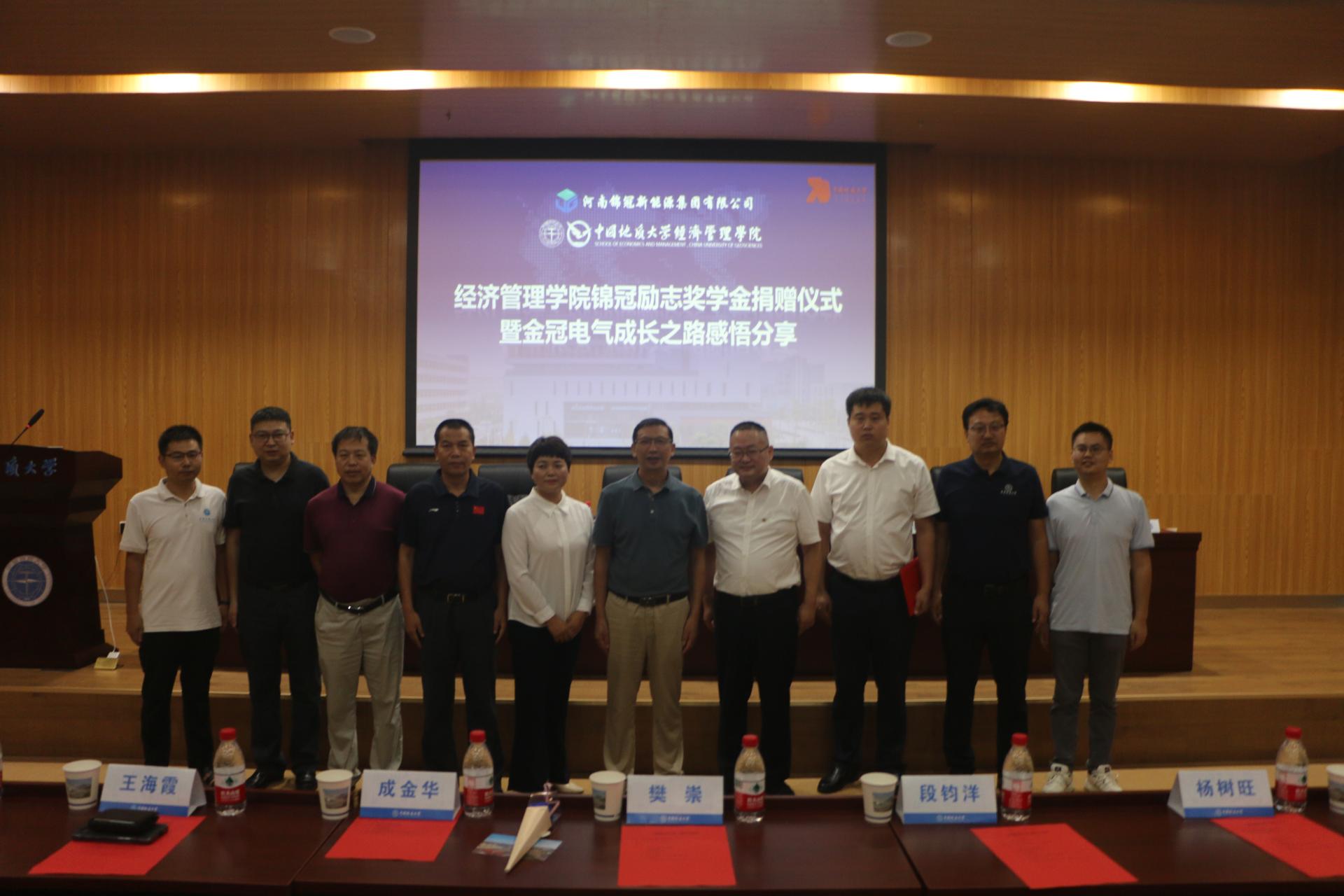 (通讯员 高婧珂)9月9日上午,williamhill英国中文“锦冠励志奖学金”捐赠仪。会议由学校原校党委副书记、纪委书记成金华教授主持。williamhill英国中文客座教授、河南锦冠新能源集团有限公司总裁、金冠电气股份有限公司董事长兼总经理樊崇向经管学院捐赠善款并致辞;金冠电气副总裁王海霞、人力资源经理段均洋及经管学院、自动化学院及校友与社会合作处负责同志参加了本次活动。